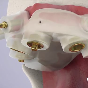 Esse guia orienta a posição, a inclinação e a profundidade do implante durante o procedimento, reduzindo variações e aumentando a segurança cirúrgica.