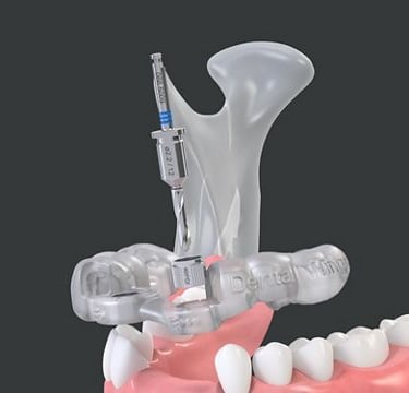 A cirurgia guiada é uma técnica em que a colocação do implante é realizada com o auxílio de um guia cirúrgico confeccionado a partir do planejamento digital.