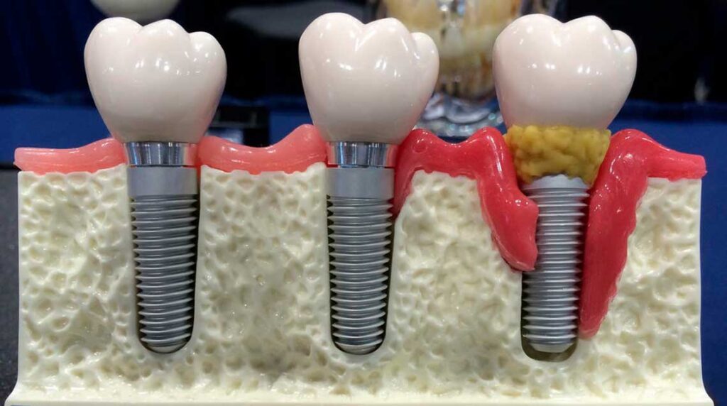 Nesses casos, o implante permanece saudável no osso e o tratamento costuma ser resolvido com correções mecânicas.
